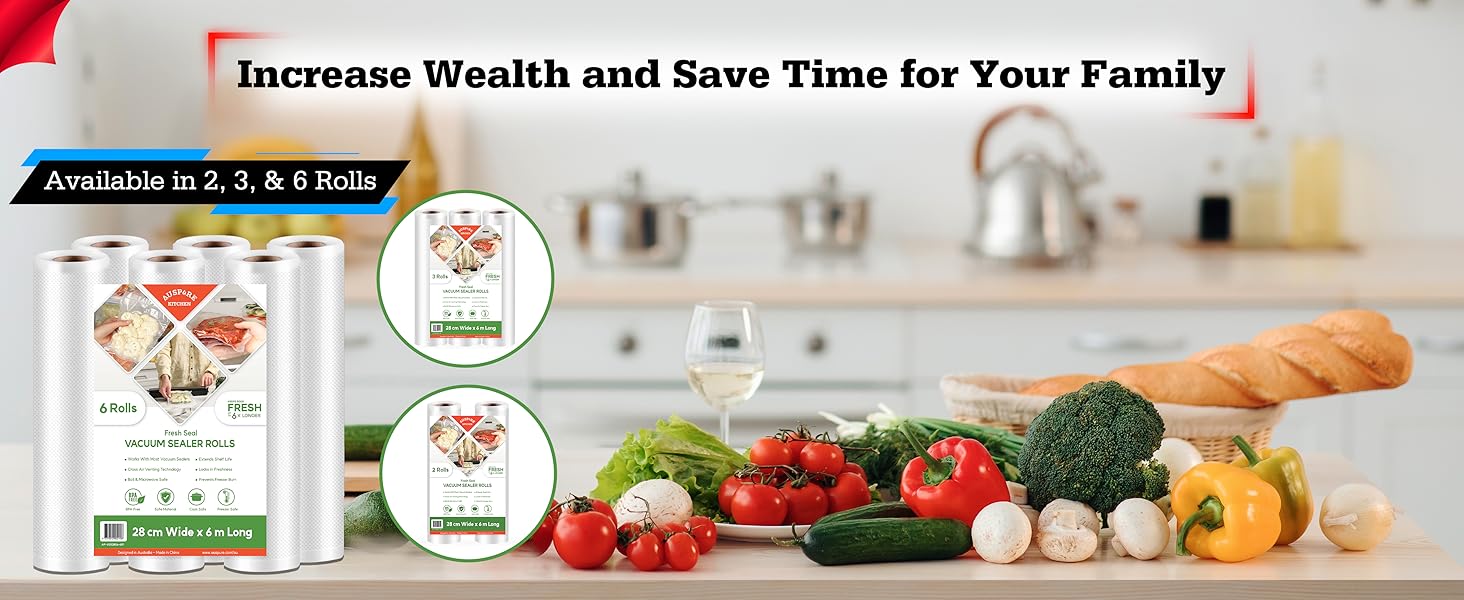 - BPA-free vacuum sealer rolls keep food fresh up to 6 times longer, with safe use in boiling water and microwaves.